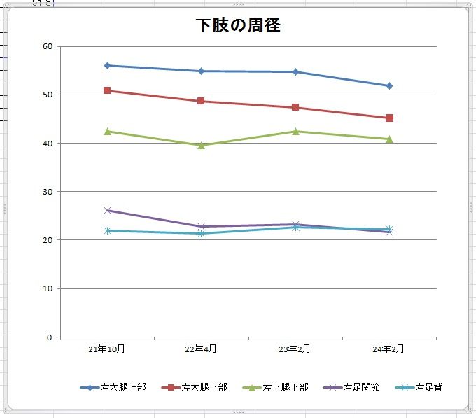 ひざ下は、サイズダウンやったけれど、太ももは微増・・・