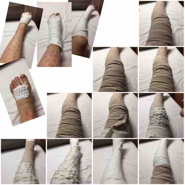 家で保護の二重のはやっぱり手間なので厚みのある筒包帯???かなり年季が入っている。